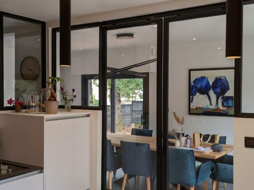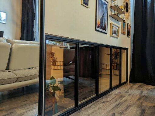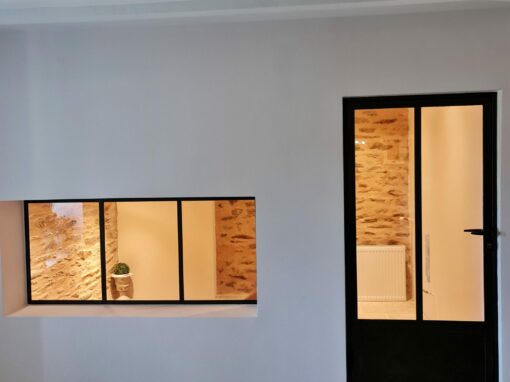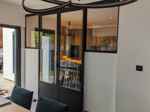 Nous réalisons des séparations métal-verre sur mesure, avec des profils équilibrés, des alignements précis et un rendu soigné. L’objectif est de créer des volumes plus lisibles, d’apporter du caractère à la pièce et de répondre aux usages du quotidien, tout en gardant une esthétique légère.