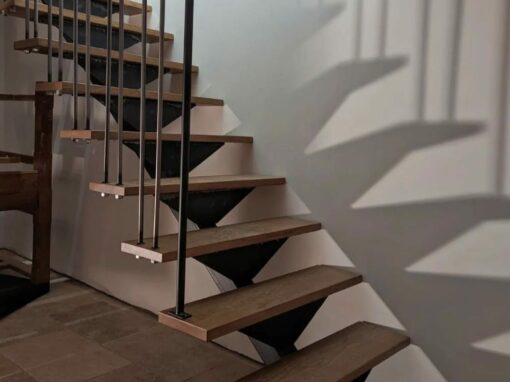 Nous concevons des escaliers et garde-corps sur mesure qui répondent d’abord à une exigence de sécurité, sans sacrifier l’esthétique. Métal, fer, bois, parfois verre : chaque combinaison est choisie pour s’intégrer à l’espace, au style de votre intérieur et à votre usage quotidien.